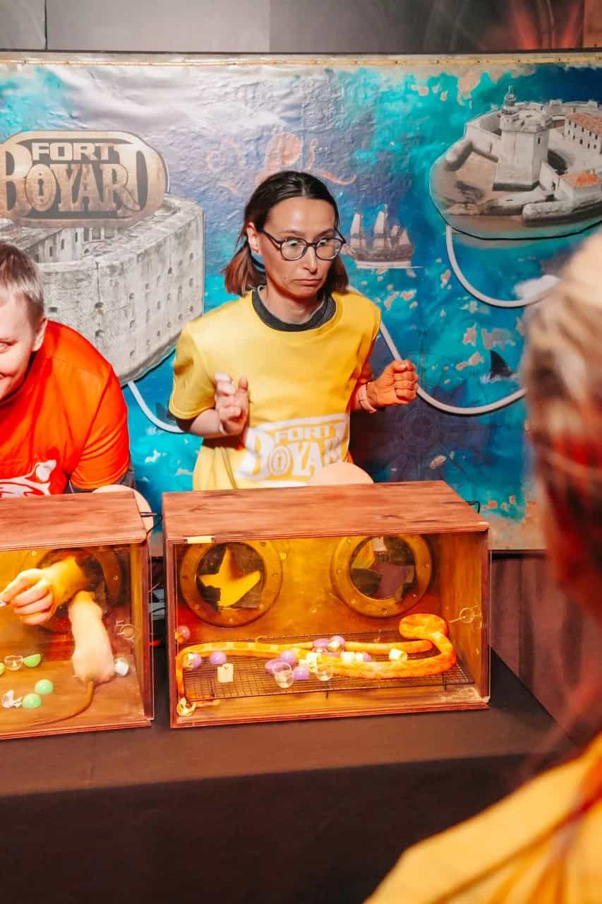 Наша стационарная площадка площадью 500 м² включает в себя 1500 кг реквизита, предоставляет доступ к множеству испытаний различной сложности, а также способна вместить до 110 человек